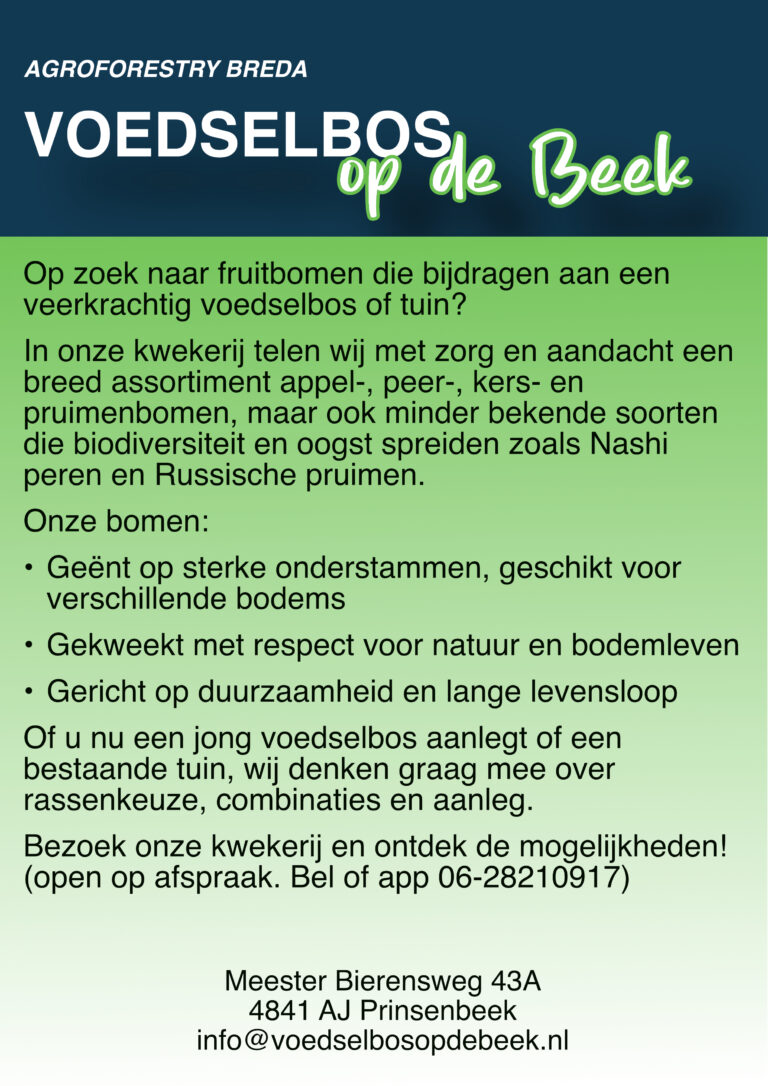 info@voedselbosopdebeek.nl met gewenst aantal en soort kan ook.